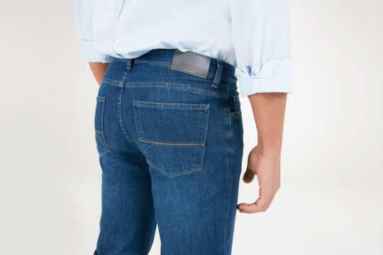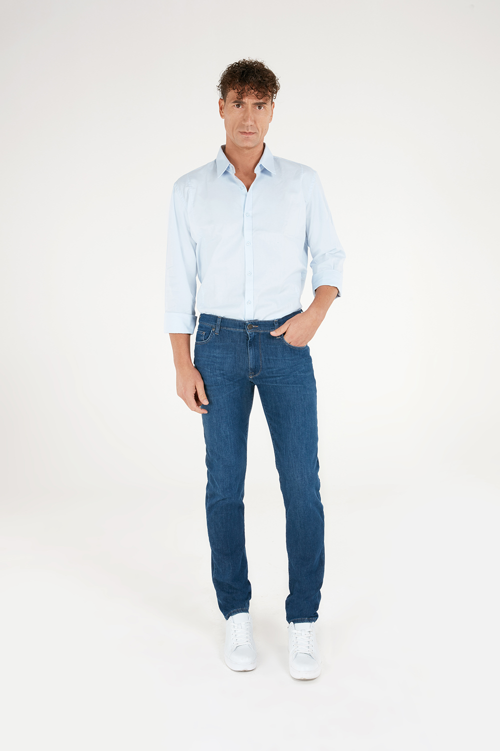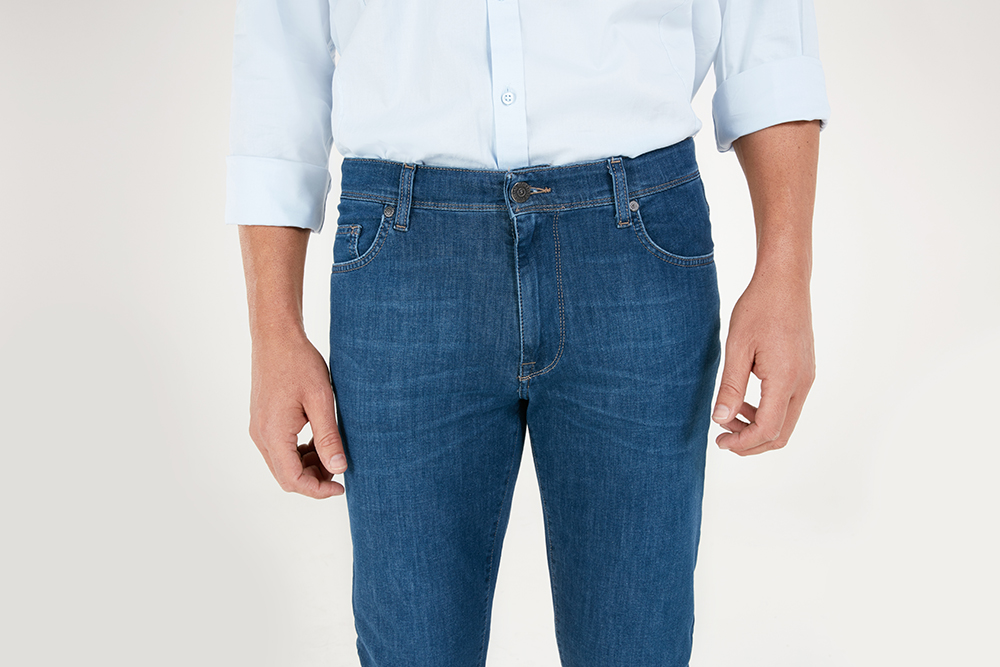 Il comodo tessuto bi-stretch caratterizza il modello CALVIN, realizzato in chiave SLIM FIT, vita regolare e gamba slim, essenziale nel suo look versatile: lavaggio blu denim medio sovrapposto da leggerissima sabbiatura tendente al corda in tela denim 9,5 oz.