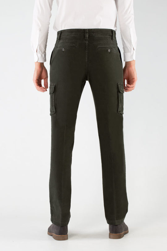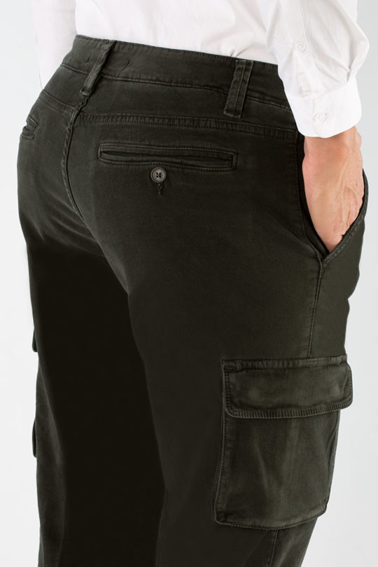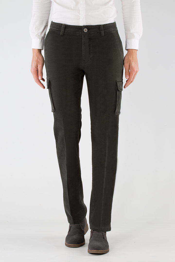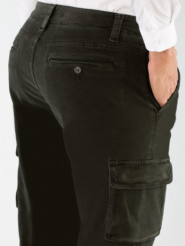 Pantalone con tasconi in gabardina color stretch, vestibilità regular fit con vita alta e fondo regolare