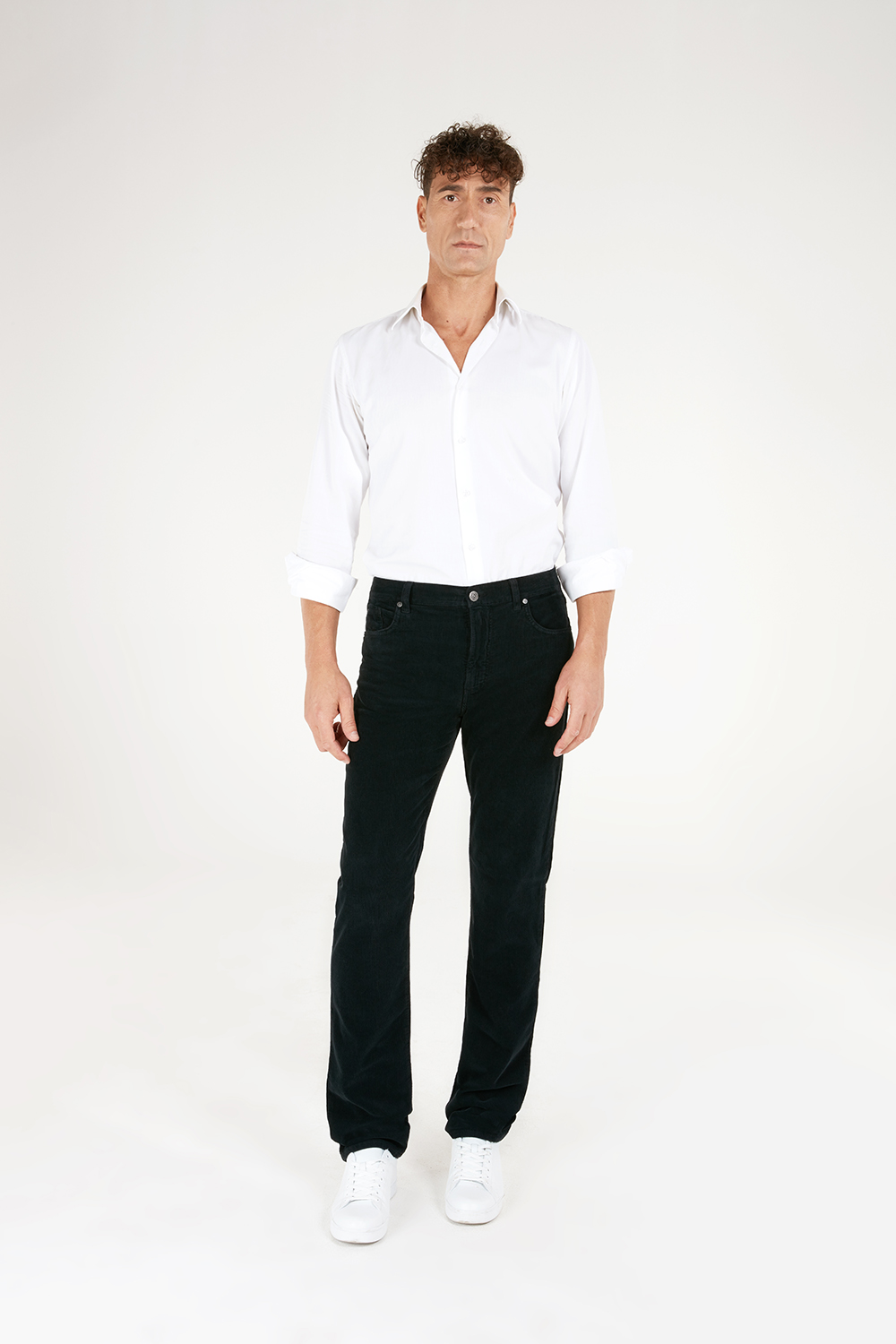 L’iconica vestibilità REGULAR FIT con vita alta e gamba regular, realizzata in morbido e caldo velluto mille righe stretch: FIR, un modello senza tempo, il capo che non deve mancare nell’armadio dell’uomo HOLIDAY.