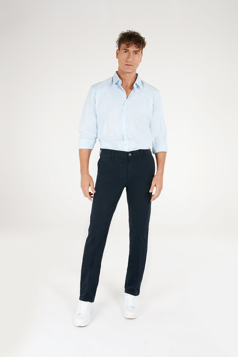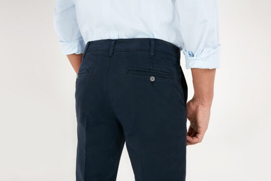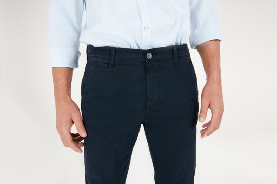 STAIGHER, il chino versatile per eccellenza: grazie alla sua vestibilità REGULAR FIT con vita alta e fondo regolare, dinamico, ma che non vuole rinunciare alla comodità neanche in veste formale, grazie alla gabardina stretch color con la quale è realizzato.