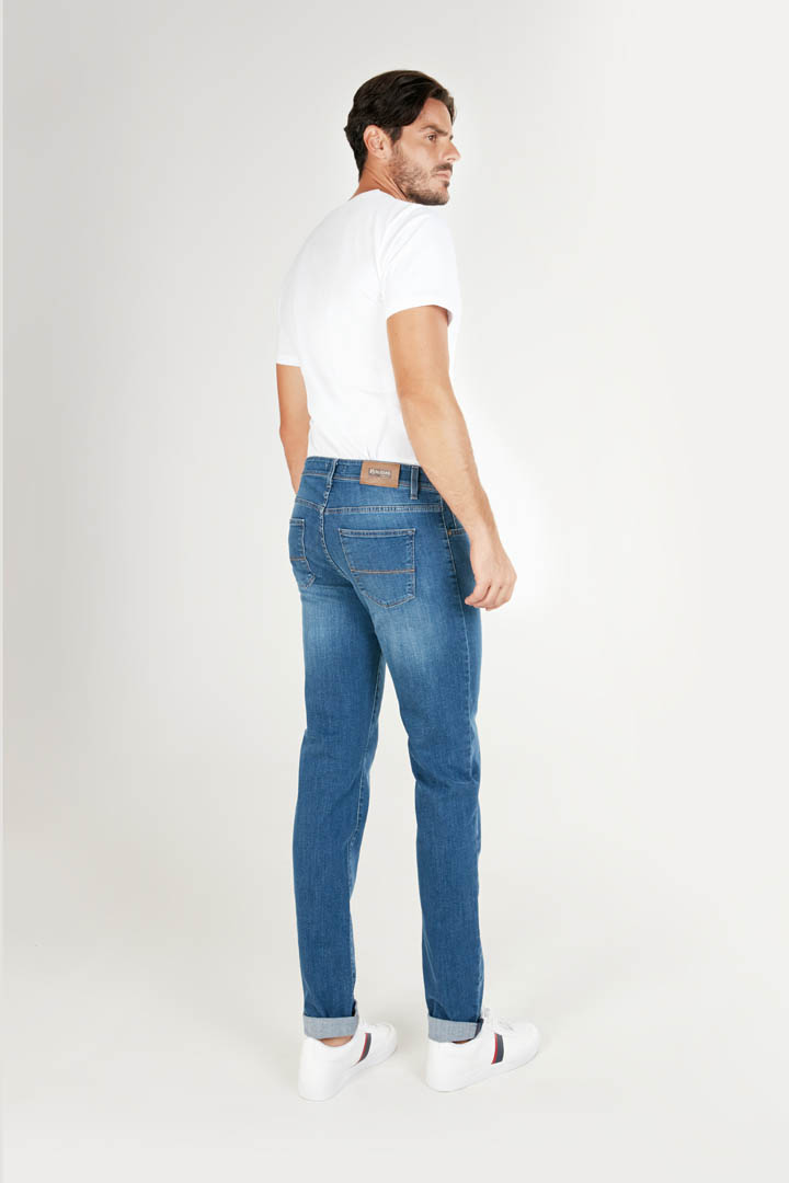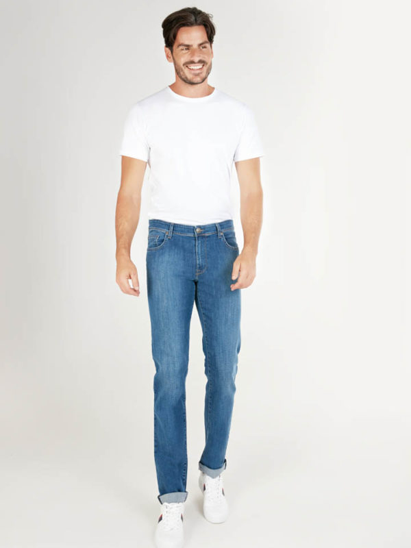 L’intramontabile cinque tasche, in uno dei lavaggi più richiesti: CLAUDIO nella sua semplicità, esprime il massimo del comfort grazie al tessuto stretch 11,5 oz con la quale è realizzato, senza rinunciare allo stile SLIM FIT, con vita regolare e fondo gamba slim. Lavaggio medio chiaro, leggermente sabbiato, contrastato dalle impunture color corda.