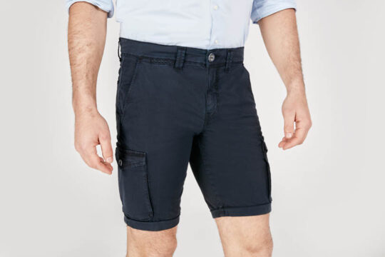 Sporty ma con stile: il modello FOLIES, bermuda cargo, vestibilità SLIM FIT, piccoli inserti in tessuto stampato, fresco cotone stretch color, tasconi laterali.