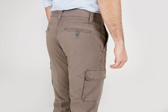 Sporty ma non troppo: il modello cargo non può mancare in nessun armadio che si rispetti. Gabardina stretch color, realizzata in vita alta e fondo regolare con tascone laterale.