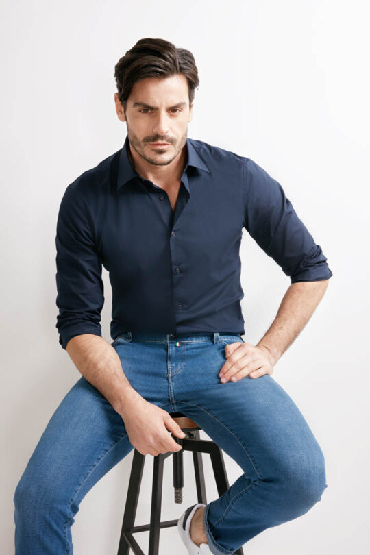 68% cotone – 19% poliestere – 11% viscosa – 2% elastan.
