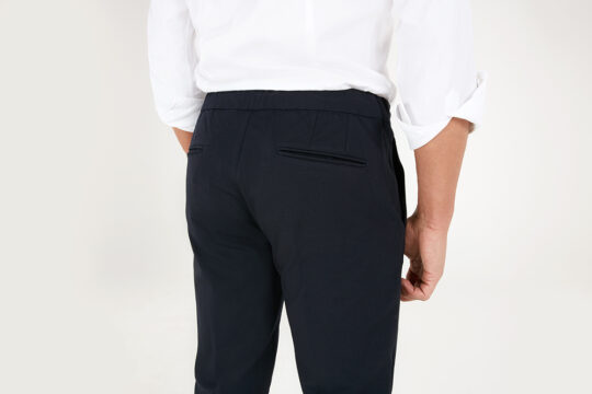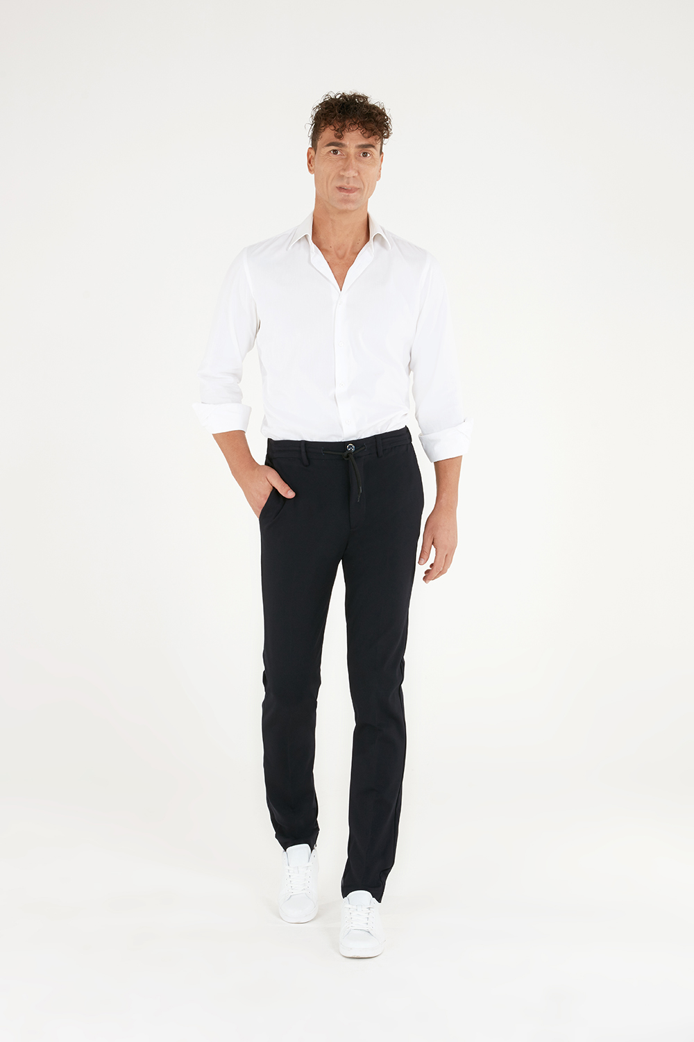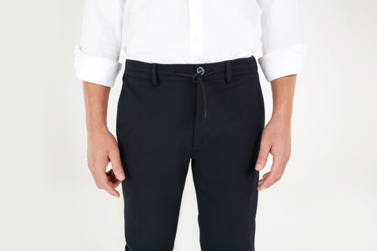 COMODITA’: ideale per giornate impegnative sempre in movimento, MASERATI, SLIM FIT, vita regular e gamba slim, tasca chino, vita elastica con cordino, realizzato in pregiato jersey punto milano, antigrinze, per non essere mai banale.
