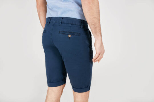 Il modello chino, disponibile anche nella versione bermuda: PAULINE, vestibilità REGULAR FIT, rigorosamente minimal ma senza trascurare l’eleganza, tasca a filetto sul retro, realizzato in twill di cotone stretch colorato.