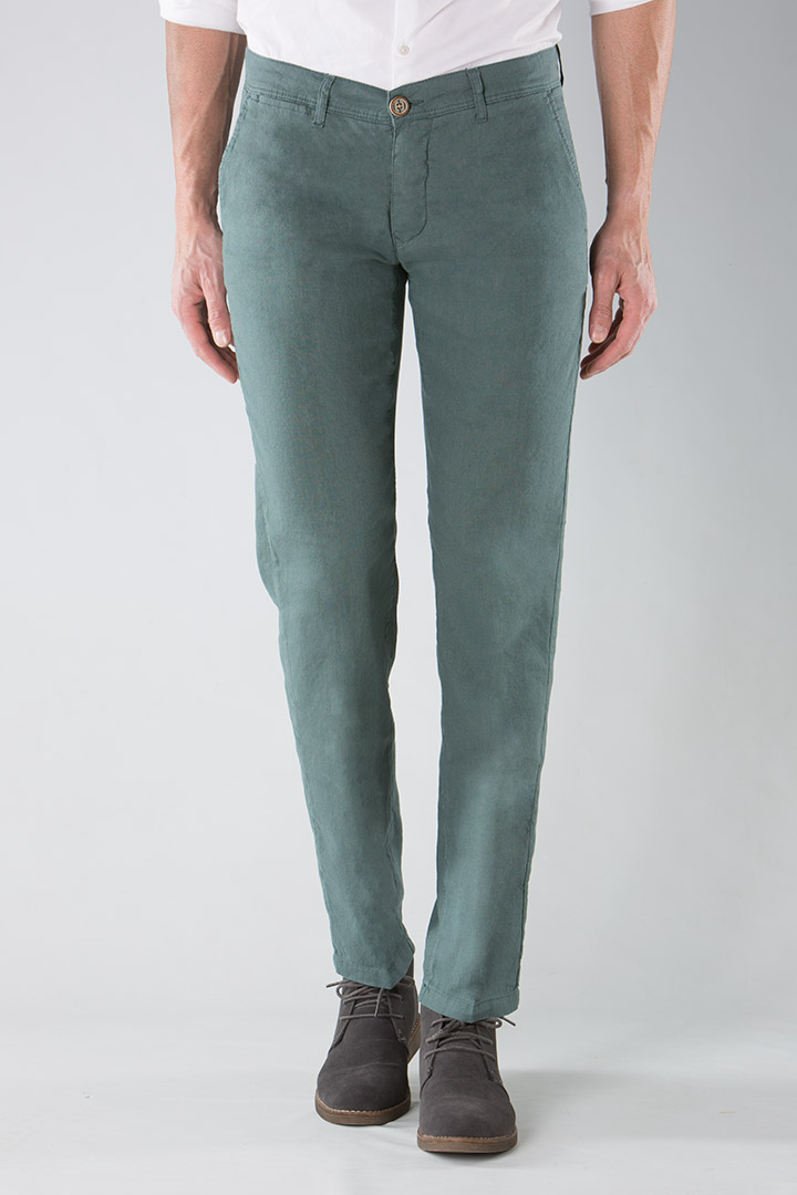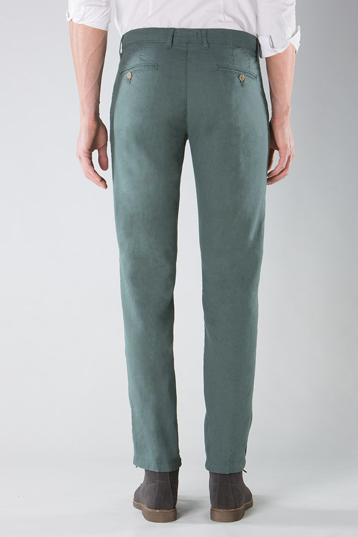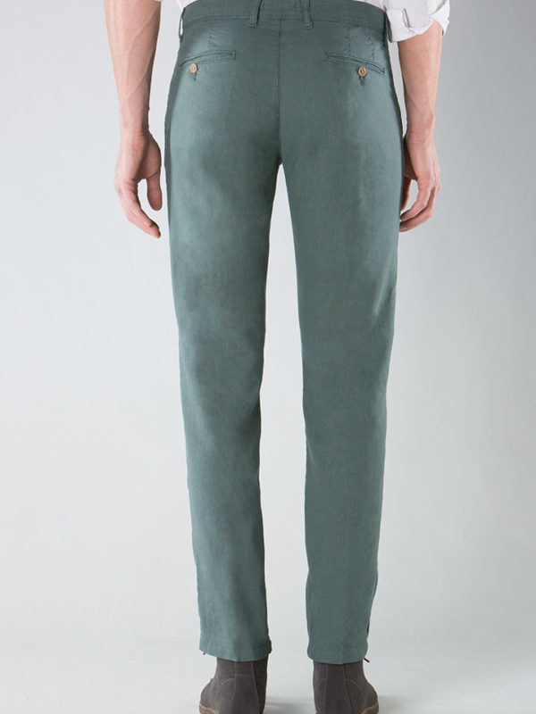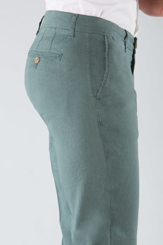 Pantalone Chino in mistolino stretch colorato, vestibilità slim fit con vita regolare e fondo regolare